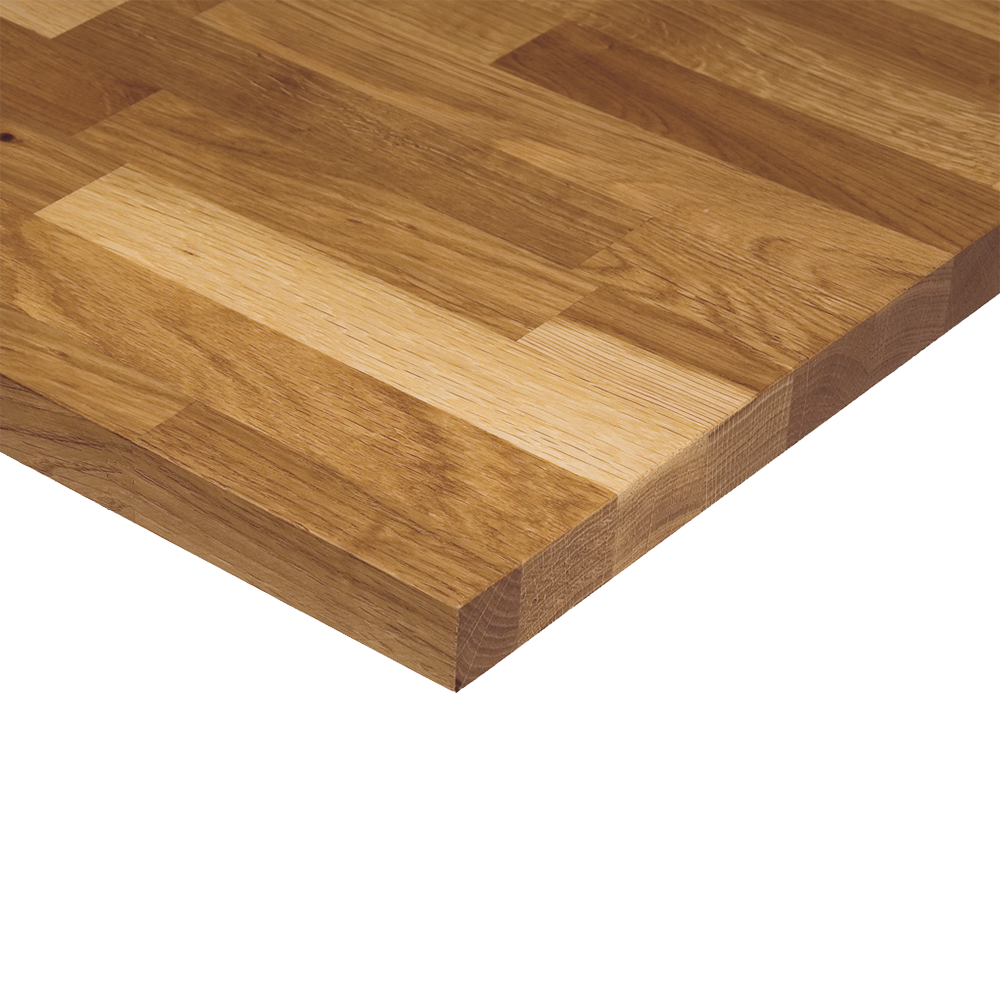 Bänkskiva i 30 mm oljad massiv stavlimmad ek. Rak kant. Ange längd vid beställning. Maxlängd 3000 mm.