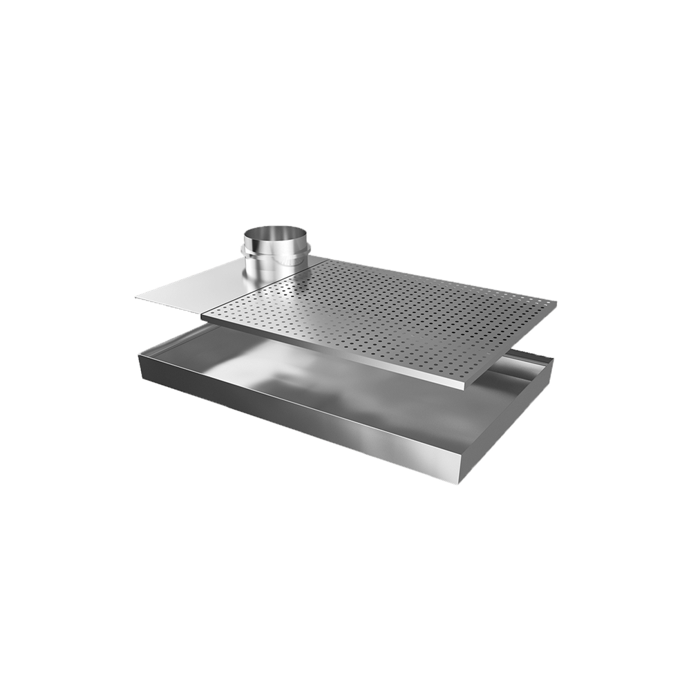 Rostfri syrafast frånluftskanal, Ø 160 mm. Standardlängd 1 m, placeras antingen till vänster eller höger om den perforerade ytan.
