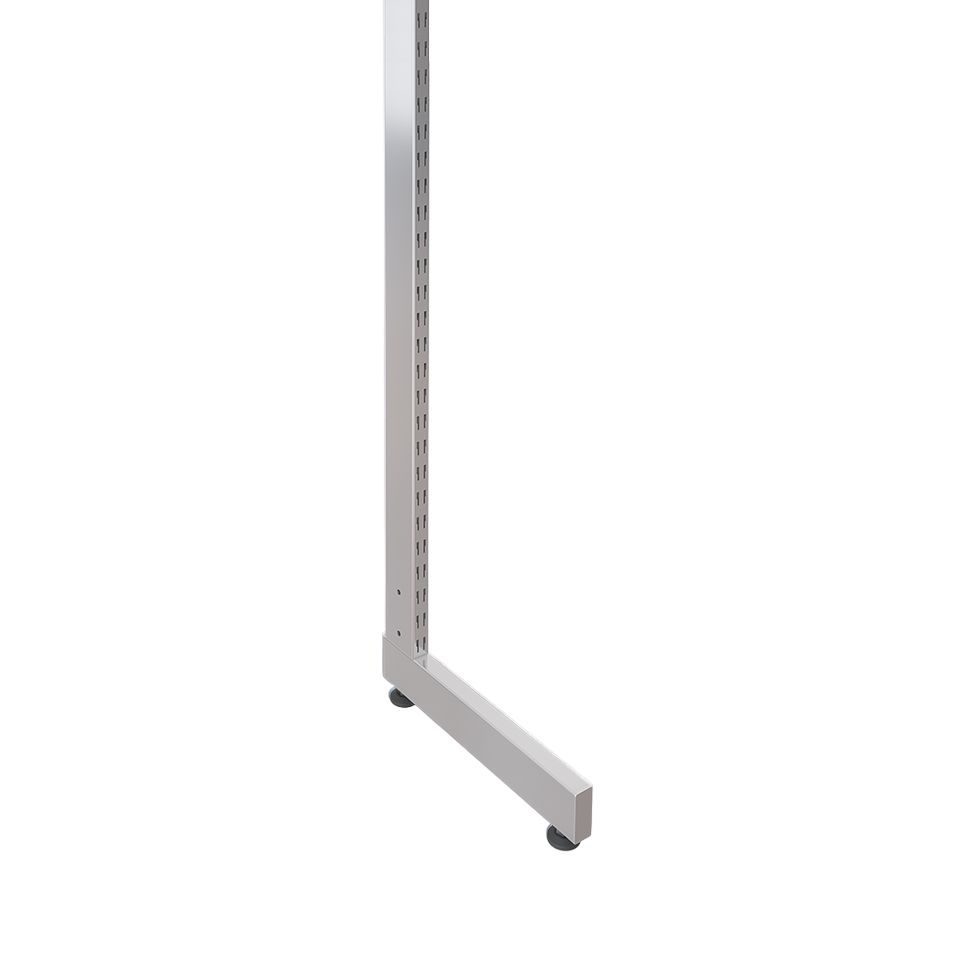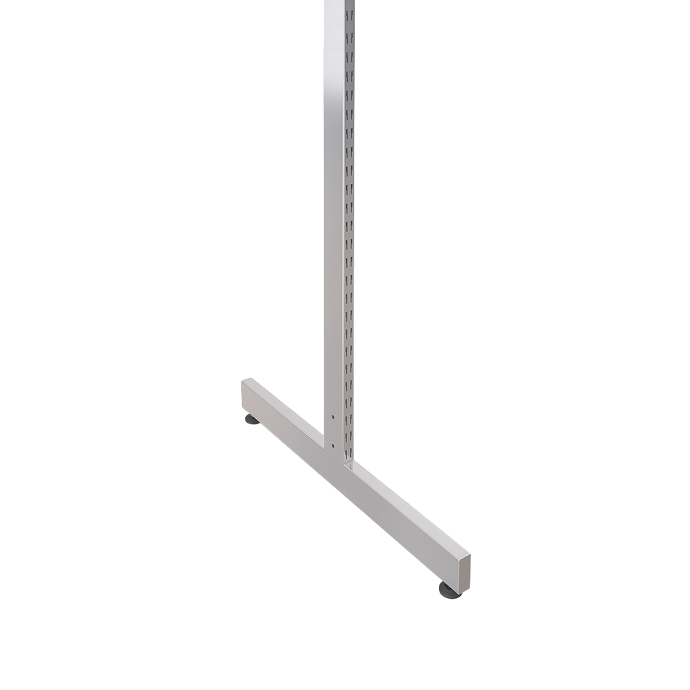 Stativ med fot levereras i samma djup som hyllplanen om inget annat önskas. Mellanstag monteras mellan L- och T-stativ.