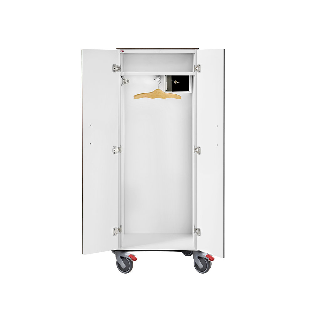 MG60 är en mobil garderob i kompaktlaminat. Inklusive hatthylla och klädstång. Yttermått bottenplatta 620×535.