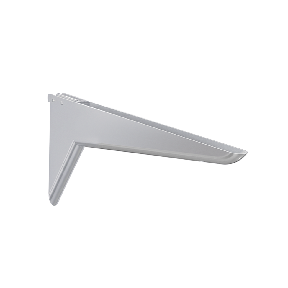 Montering med tejpbeslag eller skruv om konsolen skall vara till trähylla. Ej nödvändigt till rostfri konsol för plåthylla.