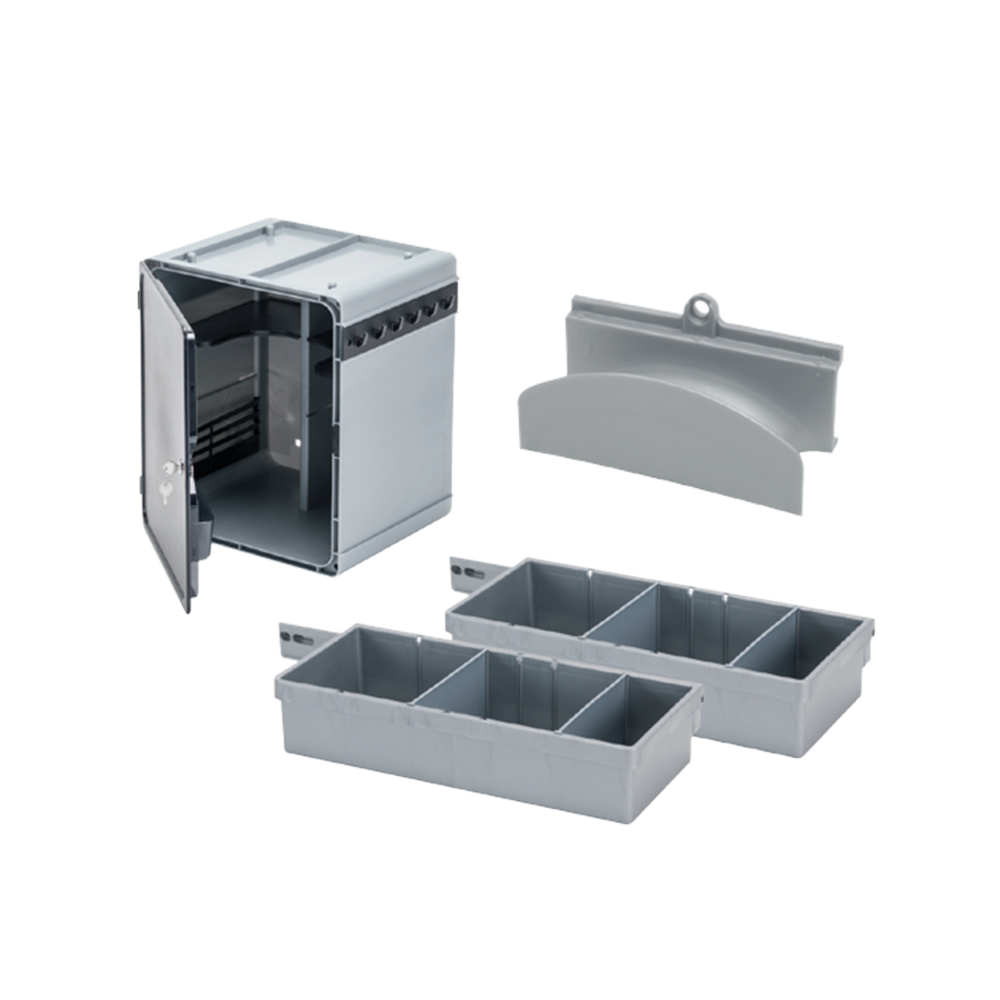 För att förhindra att damm och skräp samlas ovanpå skåpet kan det utrustas med lutande topp som tillval.